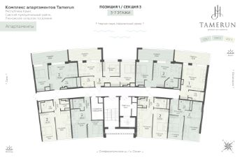 Продаются 1-комнатные апартаменты в строящемся доме (Этап 1 (Секции 1-3)), срок сдачи: IV-кв. 2028, общей площадью 42.98 кв.м., на 2 этаже. ''Tamerun'' - морская резиденция на Западном берегу Крыма, между городами Евпатория и Саки. Комплекс апартаментов ''Tamerun'' - альтернатива зарубежным курортам. В солнечной резиденции есть всё для жизни и интересного отдыха: собственный песчаный пляж и теннисный корт, бассейны с морской водой, рестораны и летнее кафе, зона СПА и фитнес-центр, общественно-деловые пространства и подземный паркинг.