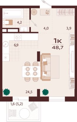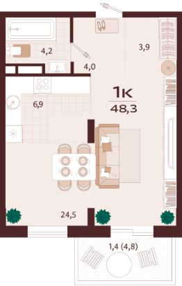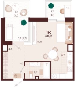Продаётся 1-комнатная квартира в строящемся доме (Корпус 3), срок сдачи: II-кв. 2027, общей площадью 48.3 кв.м., на 4 этаже. Жилой комплекс бизнес-класса ''РОЯЛТА'' от застройщика ''ГК ТОЧНО'' в городе Ялта Республики Крым на улице Спендиарова.