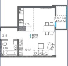 Продаётся 1-комнатная квартира в строящемся доме (Дом 1), срок сдачи: IV-кв. 2027, общей площадью 37.41 кв.м., на 19 этаже. Новый жилой комплекс ''Ай-Петри'' от застройщика ''Интерстрой'' расположен по адресу Республика Крым, Ялта, улица Кирова