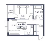 Продаётся 1-комнатная квартира в строящемся доме (Дом 1), срок сдачи: III-кв. 2026, общей площадью 40.87 кв.м., на 4 этаже. Новый жилой комплекс ''Морское дыхание'' от ГК ''Светлый'' расположен по адресу: Республика Крым, Сакский р-н, пгт Новофедоровка, ул. Лобозова, д. 1