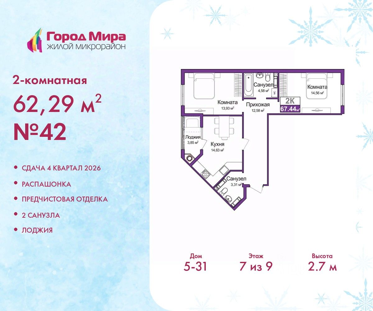 Продаётся 2-комнатная квартира в строящемся доме (Этап 4 (Секции А2, Ж2, Г4, В2, Г3)), срок сдачи: II-кв. 2028, общей площадью 64.27 кв.м., на 5 этаже. Новый жилой комплекс ''Подсолнух'' от застройщика ''Монолит'' расположен по адресу: Республика Крым, г. Симферополь, ул. Святителя Гурия