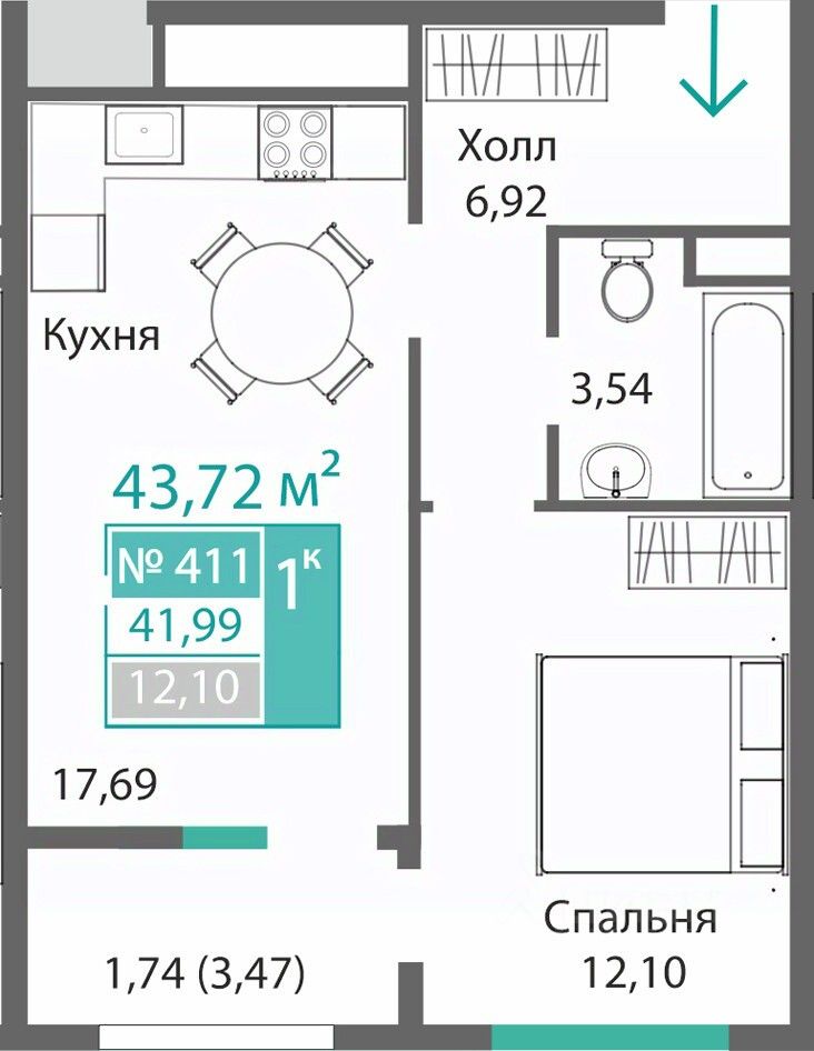 42 м² · Этаж 5 из 11