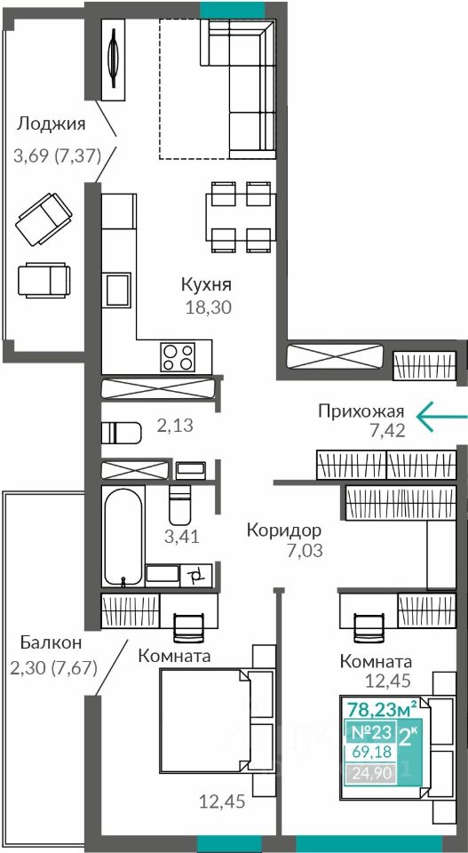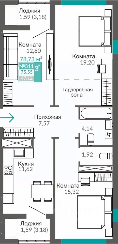 Продаётся 3-комнатная квартира в строящемся доме (С7), срок сдачи: III-кв. 2027, общей площадью 75.55 кв.м., на 9 этаже. Жилой квартал ''Абрикос'' - начало яркой истории жизни в прогрессивном районе Симферополя - Семья городских кварталов ''Крымская Роза''. Вы станете частью комьюнити, где царят принципы удобства, легкости, комфорта, заботы о здоровом образе жизни, добрососедства и открытости. Ваш дом - это место для отдыха, развития, общения и дружбы. Мы спроектировали дворовое пространство квартала так, чтобы каждому члену семьи было весело играть на площадках, спокойно расслабляться под перголой, ставить рекорды в зоне воркаута, узнавать новости от соседей в кофейне возле дома, или устраивать фотосессии с детьми в фактурной тени деревьев. Жилой квартал оживает вместе с вами и готов вместе с вами меняться!