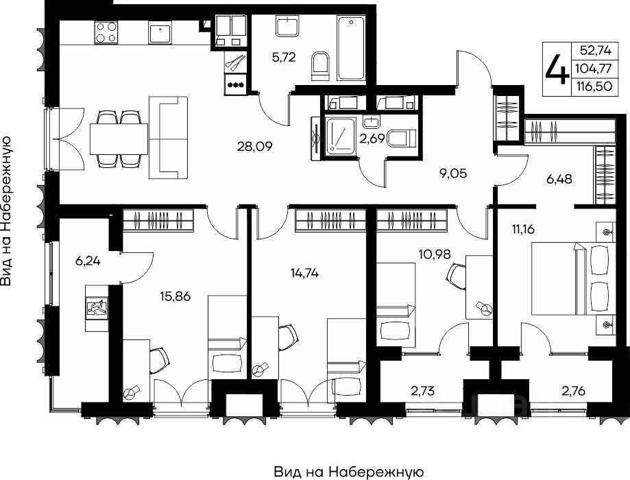 116 м² · Этаж 14 из 16