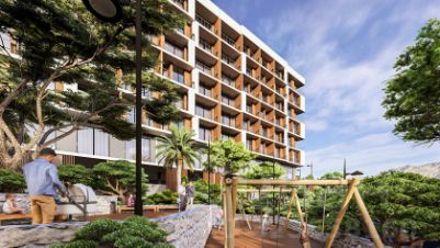 Комплекс находится в пгт. Кацивели.На земельном участке 5 588 м2 будут расположены два 8-этажных здания. Номерной фонд состоит из 234 апартаментов разных по площади и компактности. Все апартаменты имеют балконы, преобладающая часть ориентирована в сторону моря.Вокруг здания и на крыше блока есть места для отдыха с скамейками, клумбами и садовой мебелью. На территории есть спортивная и детская площадки - одна для младших детей, другая для постарше.Здание выполнено в современном стиле с элементами средиземноморской стилистики. Фасады оживляются ритмичностью деталей, фактур и цветовой отделкой. Крыша с плоской формой и элементами защиты от солнца.Подземный паркинг рассчитан на 59 машиномест. 3 места на открытой площадке. Площадь машиноместа - 13,5м2.