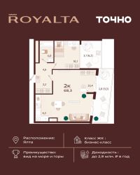Жилой комплекс ''РОЯЛТА'' включает 5 монолитно-кирпичных девятиэтажных зданий. Проект предлагает квартиры различных планировок: от однокомнатных до трехкомнатных с расширенными балконами и террасами до 13,4 м2. Территория будет благоустроена детскими игровыми и спортивными площадками, гостевой автостоянкой и озеленением, включая газоны, деревья и кустарники. Также появятся современные уличные тренажёры, СПА-комплекс и панорамный инфинити-бассейн. В шаговой доступности находятся центральная набережная Ялты, детские сады, школы, супермаркеты, торговые центры, Ялтинский медицинский колледж, автовокзал и Мордвиновский парк.