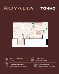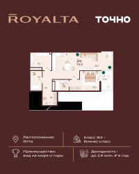 Жилой комплекс ''РОЯЛТА'' включает 5 монолитно-кирпичных девятиэтажных зданий. Проект предлагает квартиры различных планировок: от однокомнатных до трехкомнатных с расширенными балконами и террасами до 13,4 м2. Территория будет благоустроена детскими игровыми и спортивными площадками, гостевой автостоянкой и озеленением, включая газоны, деревья и кустарники. Также появятся современные уличные тренажёры, СПА-комплекс и панорамный инфинити-бассейн. В шаговой доступности находятся центральная набережная Ялты, детские сады, школы, супермаркеты, торговые центры, Ялтинский медицинский колледж, автовокзал и Мордвиновский парк.