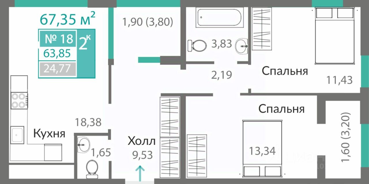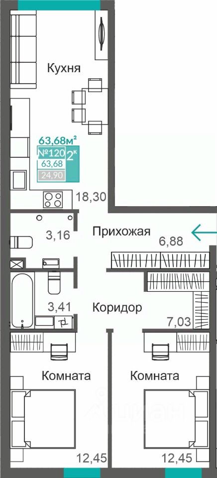 63 м² · Этаж 3 из 8
