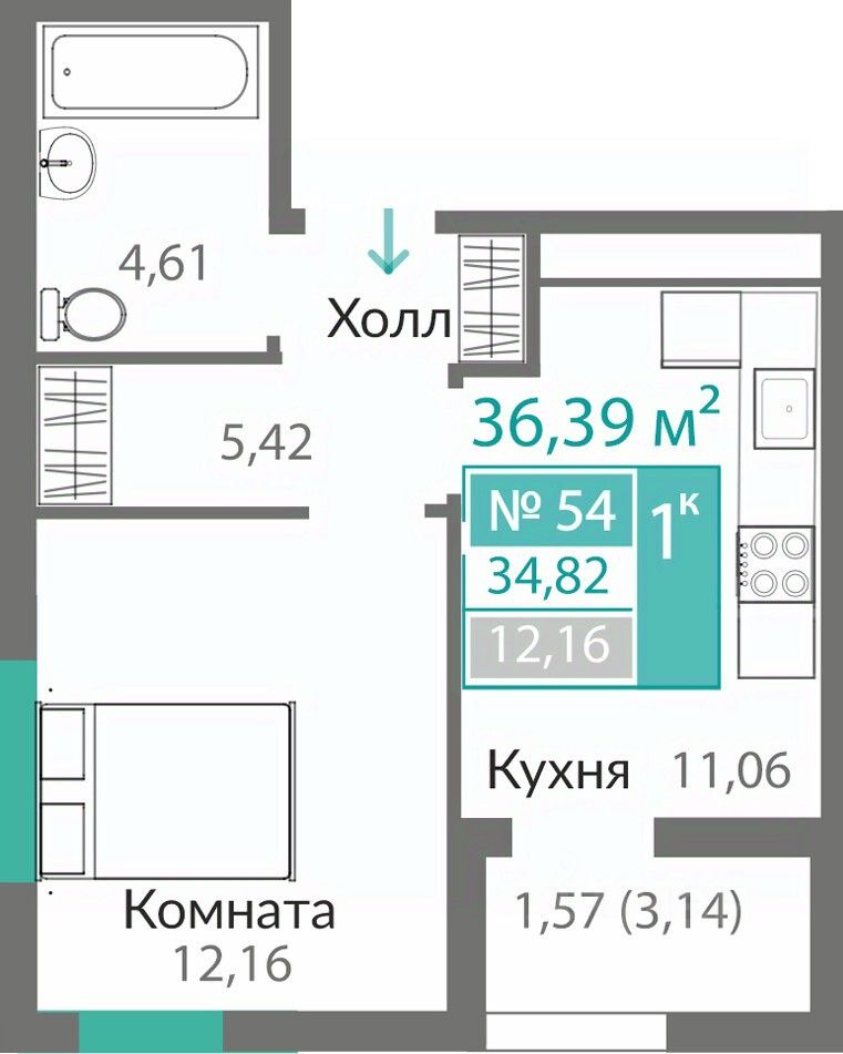 41 м² · Этаж 12 из 16