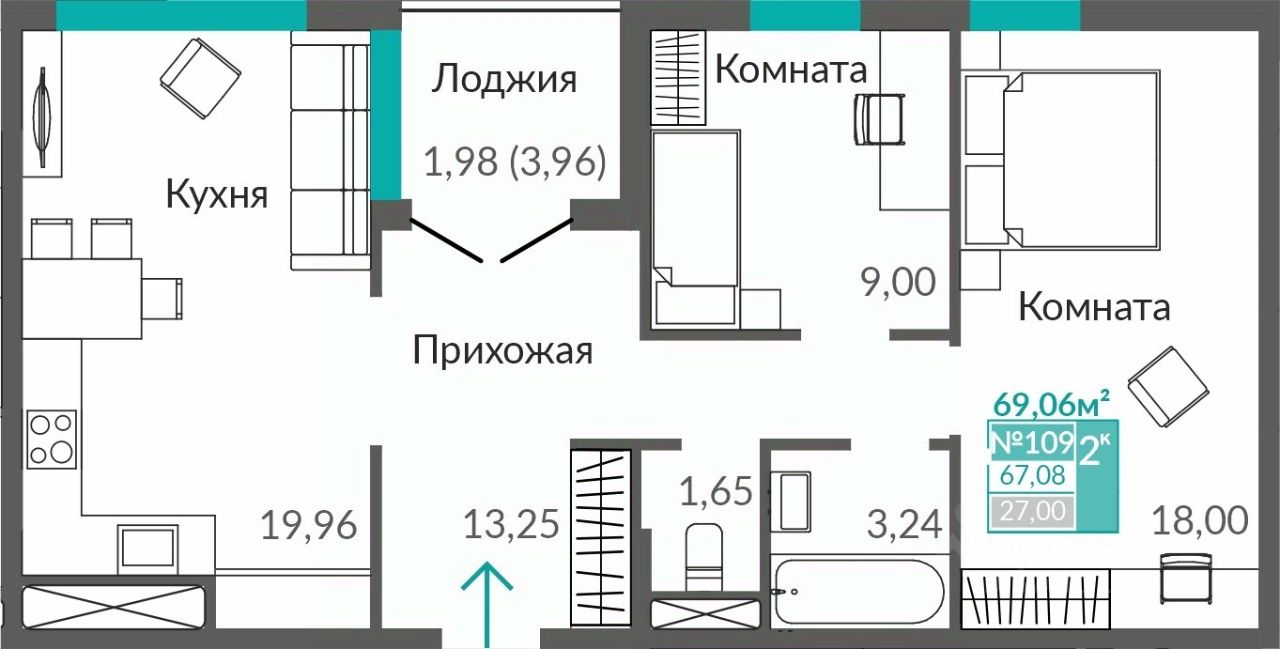 67 м² · Этаж 8 из 9