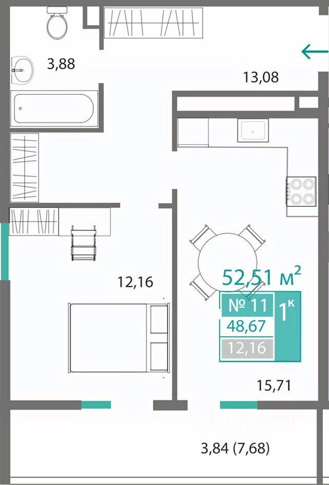 46 м² · Этаж 7 из 16