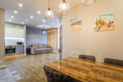 Продажа двухкомнатной квартиры в новом доме комфорт-класса ЖК Алмаз Квартира 65,5 кв.м. полностью укомплектована для комфортной жизни круглый год. Новый ремонт с очень просторной планировкой, где предусмотрели все самое необходимое для жизни, а именно: совмещенный санузел, гардеробную, просторную спальню и столовую зону, отдельно для гостей зону с двуспальной кроватью, зона кухни с гостиной. Напольное покрытие выполнено из плитки, в спальне уложен качественный ламинат. В квартире: двухспальная кровать (отделена спальня), Спальная зона с двухспальной кроватью в гостиной, диван большой но не раскладной, отдельная столовая зона, отдельно кухонная зона, стиральная машина, холодильник, микроволновая печь, большая гардеробная комната, утюг, фен, гладильная доска, хорошая кухня, телевизор смарт ТВ и кондиционер и wi-fi. В доме функционируют: частный детский сад, детская и спортивная площадки, поликлиника, детская комната, фитнес клуб с сауной, продуктовый магазин, кофейня и кондитерская. Рядом с домом большая парковочная зона для жителей дома. В комплексе предусмотрено видеонаблюдение и круглосуточная охрана, два лифта (грузовой и пассажирский), а для удобства на первом этаже терминалы пополнения и кофейный аппарат. У дома остановка общественного транспорта, удобно добираться до основных достопримечательностей (дворцы, парки, ласточкино гнездо, Ай- Петри, зоопарк, Поляна сказок, аквапарк, дельфинарий). Подробности по телефону.