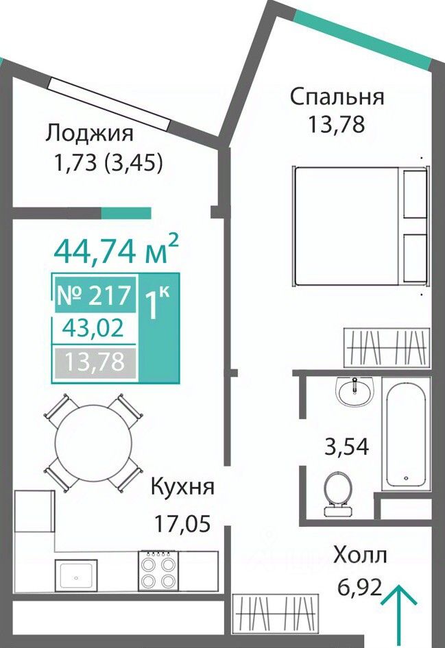 42 м² · Этаж 5 из 9
