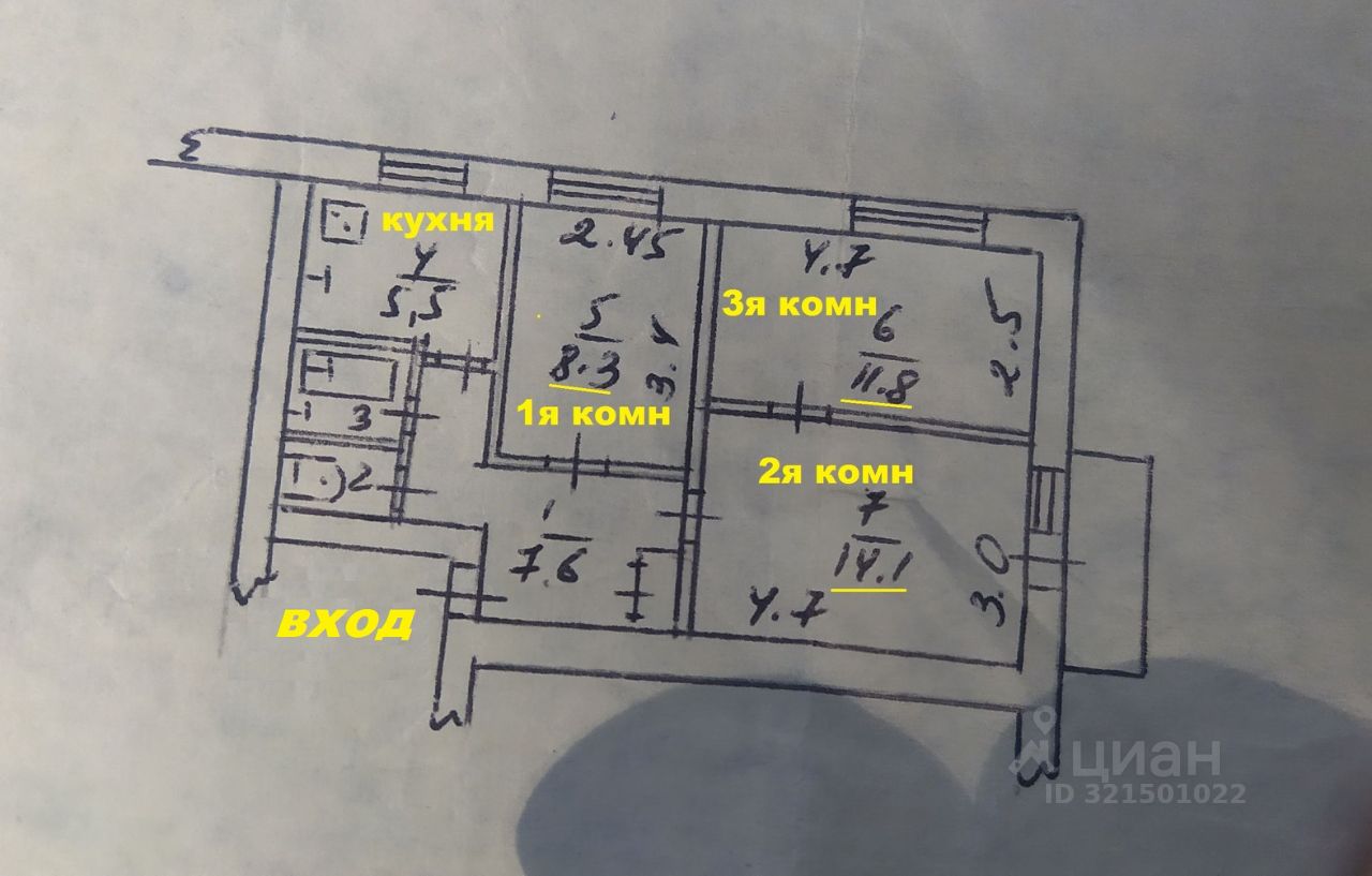 Код объекта: 1074900. Продается просторная трехкомнатная квартира с хорошей планировкой, в престижном раионе города с евроремонтом и развитои инфраструктурои - это идеальное место для тех, кто ценит комфорт и качество жизни. Рассматриваем обмен квартиры на две: 1 комнатная и 2 комнатная в этом же районе! Раион, в котором расположена квартира, является одним из самых развитых в городе. Здесь есть все необходимое для комфортнои жизни: магазины, рестораны, школы, детские сады, рынок, парк, и многое другое. Кроме того, раион находится недалеко от центра города, что позволяет быстро добраться до любои точки города. Фасад квартиры полностью утеплен, пластиковые окна, пластиковые трубы, новая проводка, ремонт сделан в 2023 году, комнаты раздельные, на кухне остается встроенная мебель и техника. Квартира имеет общую площадь 70,4 квадратных метров с лоджией (5кв.м). Кухня - 9,1ккв.м. Комнаты - 17.6, 12.6, 9.6 кв.м. Санузел раздельный 2.6 и 2.0 кв.м. Если вы ищете уютную светлую квартиру для своей семьи или для сдачи в аренду, то эта квартира идеально подходит для вас. Она расположена в тихом и спокоином раионе, но при этом находится в шаговои доступности от всех необходимых объектов инфраструктуры. Собственник один, прописанных в квартире нет, документы РФ готовы к быстрой сделке. Не упустите возможность приобрести эту прекрасную квартиру по выгоднои цене! Приглашаю заинтересованных покупателей. Звоните прямо сеичас и записываитесь на просмотр в удобное для вас время!