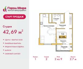 Просторная 1-комн. квартира-студия с предчистовой отделкой в ЖМ ''Город Мира'' на 10 этаже. Общая площадь: 38.42 кв.м., площадь гостиной 24.28 кв.м., из которых 5 кв.м. выделено под кухонную зону. Все окна выходят на одну сторону. В квартире одна лоджия, один совмещенный санузел. Высота потолков 2.7 м. Жилой комплекс ''Город Мира'' комфорт и гармония в современном формате. ''Город Мира'' это масштабный жилой комплекс, созданный для тех, кто ценит комфорт, безопасность и гармонию с природой. Здесь продумана каждая деталь от удобной инфраструктуры до эргономичных планировок квартир. В 2024 году микрорайон ''Город Мира'' победил в номинации ''Лучший экологический проект года в сфере строительства'' по версии премии Crimea Urban Awards. Ключевые преимущества комплекса: - удачное расположение зеленый район с благоприятным микроклиматом - продуманное зонирование жилые кварталы, зоны отдыха и коммерческие объекты - комфорт-класс высокое качество строительства и современные инженерные решения Инфраструктура ''Города Мира'': Образование и досуг: - 2 детских сада (по 260 мест каждый) - планируется строительство общеобразовательной школы - детские и спортивные площадки в каждом дворе - беседки для отдыха, зоны для выгула собак Ритейл и сервис: - магазины, аптеки, медицинские центры - фитнес-клубы, салоны красоты - детские развивающие центры Парковки: - гостевые парковки - наземные и подземные паркинги Квартиры с продуманным комфортом: - просторные планировки с кладовыми и колясочными - лоджии с остеклением - автономное отопление (по 23 дому: индивидуальное отопление) - выполнена стяжка пола (по 3, 4, 20, 21, 22 домам: выполненная стяжка пола и штукатурка стен) - Консьерж-сервис для дополнительного удобства Благоустройство территории: - ландшафтный дизайн с зонами отдыха - современные детские площадки - стильные холлы с дизайнерской отделкой - система видеонаблюдения для безопасности ''Город Мира'' это место, где созданы все условия для комфортной жизни. Выбирайте качество и продуманность в каждой детали! Квартира находится в корпусе 3_23. Дом монолитный, одноподъездный, высотой 16 этажей. В подъезде 1 пассажирский и 1 грузовой лифт. Окончание строительства - 1 квартал 2026 года. Оформление сделки по договору долевого участия. #zMsfDw