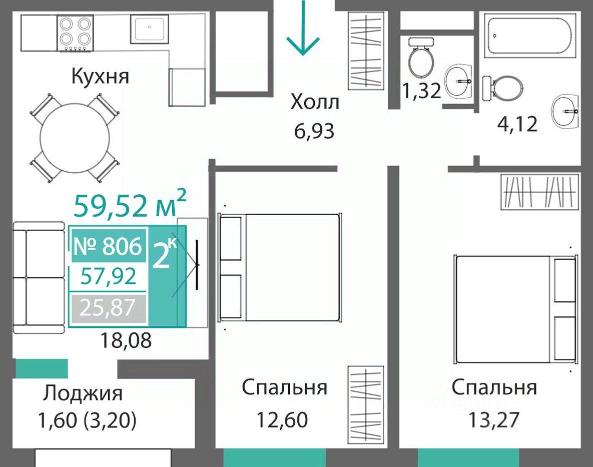 Продаётся 2-комнатная квартира в строящемся доме (Этап 4 (Секции А2, Ж2, Г4, В2, Г3)), срок сдачи: II-кв. 2028, общей площадью 57.92 кв.м., на 8 этаже. Новый жилой комплекс ''Подсолнух'' от застройщика ''Монолит'' расположен по адресу: Республика Крым, г. Симферополь, ул. Святителя Гурия