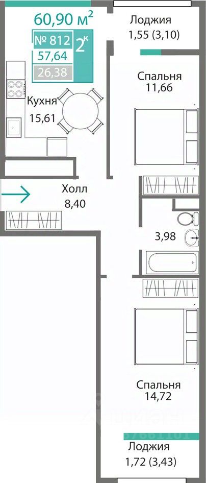 Продаётся 2-комнатная квартира в строящемся доме (Этап 4 (Секции А2, Ж2, Г4, В2, Г3)), срок сдачи: II-кв. 2028, общей площадью 57.64 кв.м., на 8 этаже. Новый жилой комплекс ''Подсолнух'' от застройщика ''Монолит'' расположен по адресу: Республика Крым, г. Симферополь, ул. Святителя Гурия