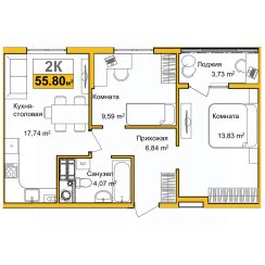 Продаётся 2-комнатная квартира в сданном доме (Корпус 1), срок сдачи: III-кв. 2025, общей площадью 55.41 кв.м., на 4 этаже. Новый жилой комплекс ''Кубики'' от застройщика ''ИнтерСтрой'' расположен по адресу: Россия, Республика Крым, городской округ Евпатория, посёлок городского типа Заозёрное, Олимпийская улица, 2