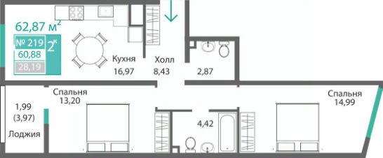 Продаётся 2-комнатная квартира в строящемся доме (Этап 4 (Секции А2, Ж2, Г4, В2, Г3)), срок сдачи: II-кв. 2028, общей площадью 62.87 кв.м., на 2 этаже. Новый жилой комплекс ''Подсолнух'' от застройщика ''Монолит'' расположен по адресу: Республика Крым, г. Симферополь, ул. Святителя Гурия