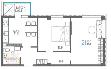 Продаётся 2-комнатная квартира в строящемся доме (Дом 4), срок сдачи: IV-кв. 2028, общей площадью 57.59 кв.м., на 8 этаже. Новый жилой комплекс ''Сезоны'' от застройщика ''ИнтерСтрой'' расположен по адресу: Республика Крым, Евпатория, проспект Победы