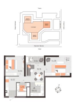 Продаётся 2-комнатная квартира в строящемся доме (Дом 3), срок сдачи: IV-кв. 2028, общей площадью 56.94 кв.м., на 6 этаже. Новый жилой комплекс ''Сезоны'' от застройщика ''ИнтерСтрой'' расположен по адресу: Республика Крым, Евпатория, проспект Победы