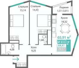 Продаётся 2-комнатная квартира в строящемся доме (Этап 4 (Секции А2, Ж2, Г4, В2, Г3)), срок сдачи: II-кв. 2028, общей площадью 66.79 кв.м., на 7 этаже. Новый жилой комплекс ''Подсолнух'' от застройщика ''Монолит'' расположен по адресу: Республика Крым, г. Симферополь, ул. Святителя Гурия