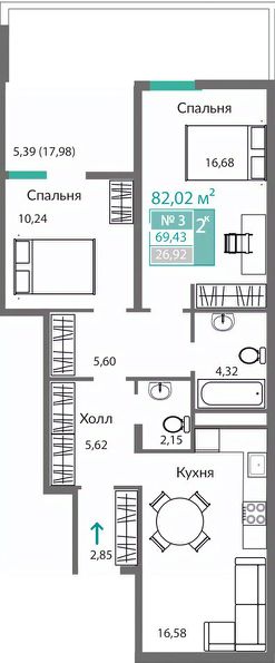 Продаётся 2-комнатная квартира в строящемся доме (Этап 16 (Секция В9)), срок сдачи: II-кв. 2027, общей площадью 68.85 кв.м., на 3 этаже. В жизни каждого наступает момент, когда мы понимаем, что выросли. Приходит время твердо идти вперед, расширять границы и открывать новые горизонты. Городской округ ''Горизонты'' - прекрасен для первого собственного жилья, идеален для выхода на новый уровень сбалансированной и легкой жизни.