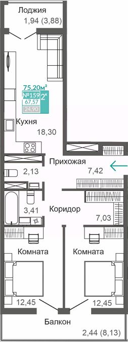 Продаётся 2-комнатная квартира в строящемся доме (3 этап (Секция Б7.1)), срок сдачи: I-кв. 2027, общей площадью 68.62 кв.м., на 2 этаже. Новый жилой квартал ''Горизонты'' от застройщика ''Монолит'' расположен по адресу Республика Крым, Симферополь, микрорайон Крымская роза.