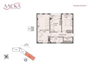 Продаётся 2-комнатная квартира в строящемся доме (Корпус 1), срок сдачи: I-кв. 2026, общей площадью 58.71 кв.м., на 2 этаже. Жилой комплекс ''На Фонтанке'' в городе Алушта на улице Багликова.