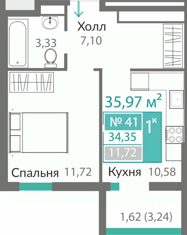 41 м² · Этаж 11 из 16