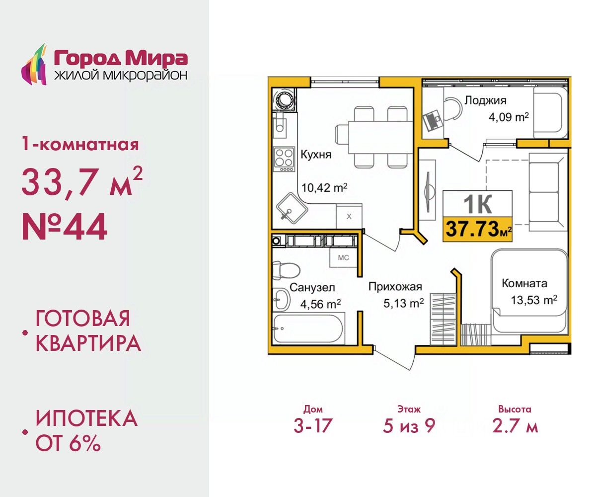 Готовые квартиры. Ипотека от 6%. По всем вопросам звоните в офис продаж, мы вам все подробно расскажем. 1-комн. квартира с предчистовой отделкой в ЖМ ''Город Мира'' на 5 этаже. Общая площадь: 33.7 кв.м., жилая: 13.53 кв.м., площадь просторной кухни-столовой: 10.42 кв.м. Все окна выходят на одну сторону. В квартире одна лоджия, один совмещенный санузел. Высота потолков 2.7 м. Жилой комплекс ''Город Мира'' комфорт и гармония в современном формате. ''Город Мира'' это масштабный жилой комплекс, созданный для тех, кто ценит комфорт, безопасность и гармонию с природой. Здесь продумана каждая деталь от удобной инфраструктуры до эргономичных планировок квартир. В 2024 году микрорайон ''Город Мира'' победил в номинации ''Лучший экологический проект года в сфере строительства'' по версии премии Crimea Urban Awards. Ключевые преимущества комплекса: - удачное расположение зеленый район с благоприятным микроклиматом - продуманное зонирование жилые кварталы, зоны отдыха и коммерческие объекты - комфорт-класс высокое качество строительства и современные инженерные решения Инфраструктура ''Города Мира'': Образование и досуг: - 2 детских сада (по 260 мест каждый) - планируется строительство общеобразовательной школы - детские и спортивные площадки в каждом дворе - беседки для отдыха, зоны для выгула собак Ритейл и сервис: - магазины, аптеки, медицинские центры - фитнес-клубы, салоны красоты - детские развивающие центры Парковки: - гостевые парковки - наземные и подземные паркинги Квартиры с продуманным комфортом: - просторные планировки с кладовыми и колясочными - лоджии с остеклением - автономное отопление (по 23 дому: индивидуальное отопление) - выполнена стяжка пола (по 3, 4, 20, 21, 22 домам: выполненная стяжка пола и штукатурка стен) - Консьерж-сервис для дополнительного удобства Благоустройство территории: - ландшафтный дизайн с зонами отдыха - современные детские площадки - стильные холлы с дизайнерской отделкой - система видеонаблюдения для безопасности ''Город Мира'' это место, где созданы все условия для комфортной жизни. Выбирайте качество и продуманность в каждой детали! Квартира находится в корпусе 3_17. Дом монолитный, одноподъездный, высотой 9 этажей. В подъезде 1 грузовой лифт. В настоящее время строительство окончено, дом сдан в 4 квартале 2024 года. Оформление сделки по договору купли-продажи. #2Ma3Sa