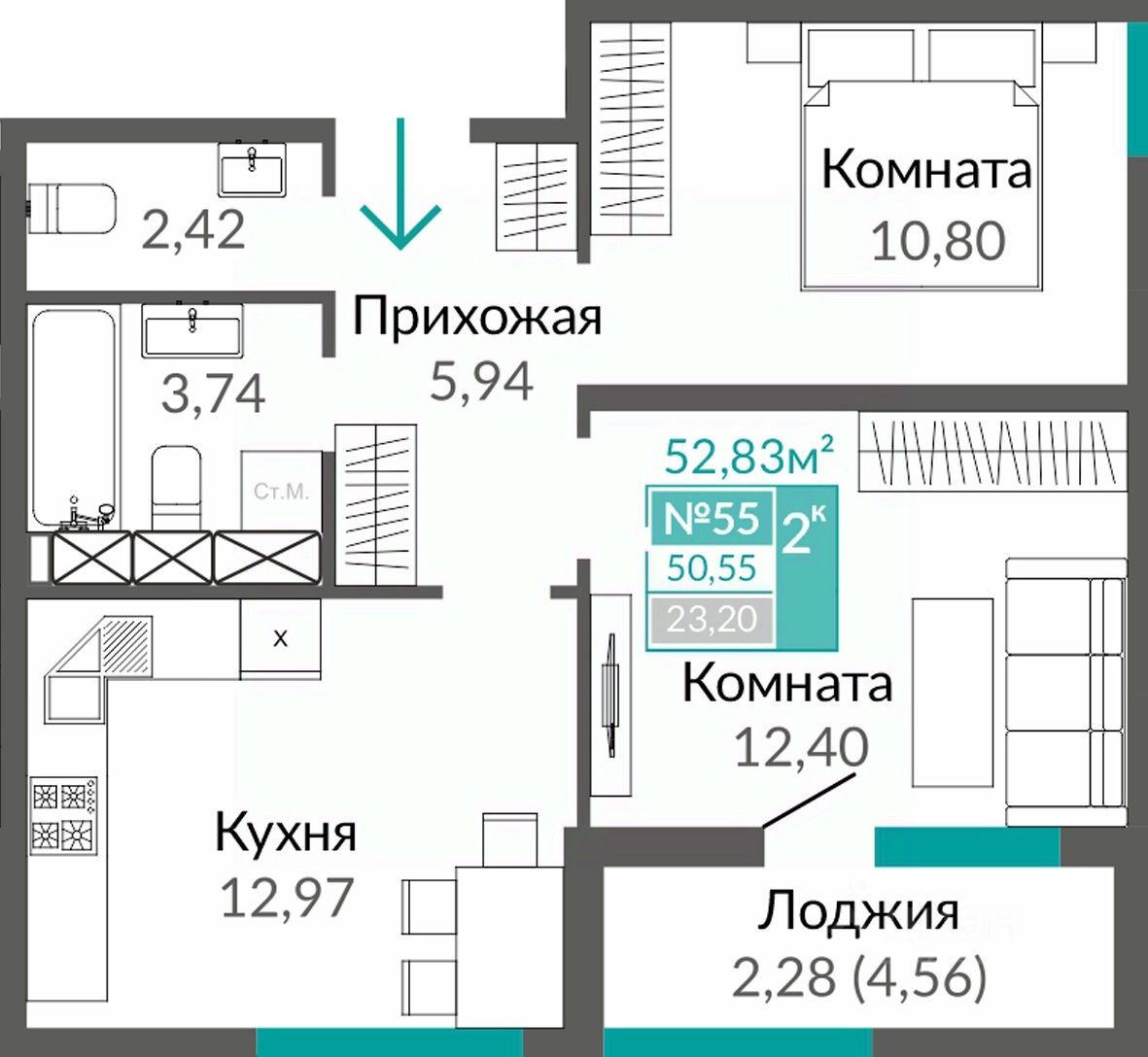 Продаётся 2-комнатная квартира в строящемся доме (С7), срок сдачи: III-кв. 2027, общей площадью 67.64 кв.м., на 9 этаже. Жилой квартал ''Абрикос'' - начало яркой истории жизни в прогрессивном районе Симферополя - Семья городских кварталов ''Крымская Роза''. Вы станете частью комьюнити, где царят принципы удобства, легкости, комфорта, заботы о здоровом образе жизни, добрососедства и открытости. Ваш дом - это место для отдыха, развития, общения и дружбы. Мы спроектировали дворовое пространство квартала так, чтобы каждому члену семьи было весело играть на площадках, спокойно расслабляться под перголой, ставить рекорды в зоне воркаута, узнавать новости от соседей в кофейне возле дома, или устраивать фотосессии с детьми в фактурной тени деревьев. Жилой квартал оживает вместе с вами и готов вместе с вами меняться!