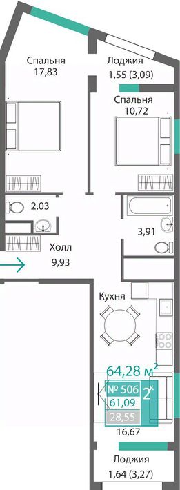 Продаётся 2-комнатная квартира в строящемся доме (Этап 4 (Секции А2, Ж2, Г4, В2, Г3)), срок сдачи: II-кв. 2028, общей площадью 66.79 кв.м., на 4 этаже. Новый жилой комплекс ''Подсолнух'' от застройщика ''Монолит'' расположен по адресу: Республика Крым, г. Симферополь, ул. Святителя Гурия