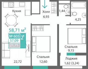 Продаётся 2-комнатная квартира в строящемся доме (1 этап (Секция Б9)), срок сдачи: I-кв. 2027, общей площадью 69.64 кв.м., на 5 этаже. Новый жилой квартал ''Горизонты'' от застройщика ''Монолит'' расположен по адресу Республика Крым, Симферополь, микрорайон Крымская роза.