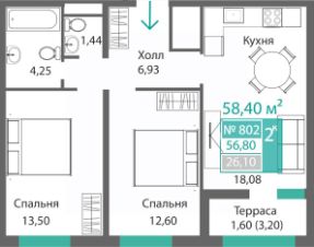 Продаётся 2-комнатная квартира в строящемся доме (Этап 4 (Секции А2, Ж2, Г4, В2, Г3)), срок сдачи: II-кв. 2028, общей площадью 57.92 кв.м., на 8 этаже. Новый жилой комплекс ''Подсолнух'' от застройщика ''Монолит'' расположен по адресу: Республика Крым, г. Симферополь, ул. Святителя Гурия