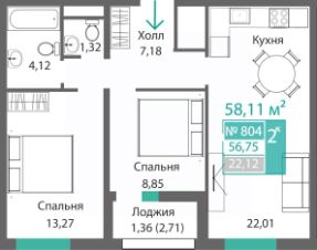 Продаётся 2-комнатная квартира в строящемся доме (Этап 4 (Секции А2, Ж2, Г4, В2, Г3)), срок сдачи: II-кв. 2028, общей площадью 58.11 кв.м., на 8 этаже. Новый жилой комплекс ''Подсолнух'' от застройщика ''Монолит'' расположен по адресу: Республика Крым, г. Симферополь, ул. Святителя Гурия