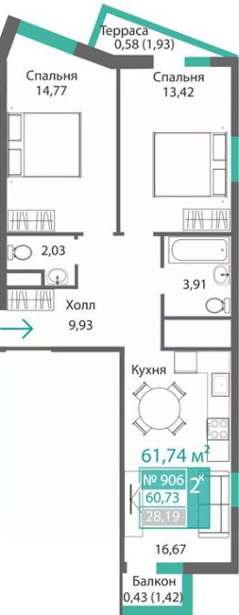 Продаётся 2-комнатная квартира в строящемся доме (Этап 4 (Секции А2, Ж2, Г4, В2, Г3)), срок сдачи: II-кв. 2028, общей площадью 61.74 кв.м., на 9 этаже. Новый жилой комплекс ''Подсолнух'' от застройщика ''Монолит'' расположен по адресу: Республика Крым, г. Симферополь, ул. Святителя Гурия