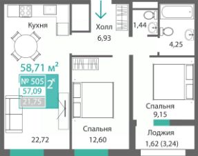 Продаётся 2-комнатная квартира в строящемся доме (Этап 4 (Секции А2, Ж2, Г4, В2, Г3)), срок сдачи: II-кв. 2028, общей площадью 58.71 кв.м., на 6 этаже. Новый жилой комплекс ''Подсолнух'' от застройщика ''Монолит'' расположен по адресу: Республика Крым, г. Симферополь, ул. Святителя Гурия