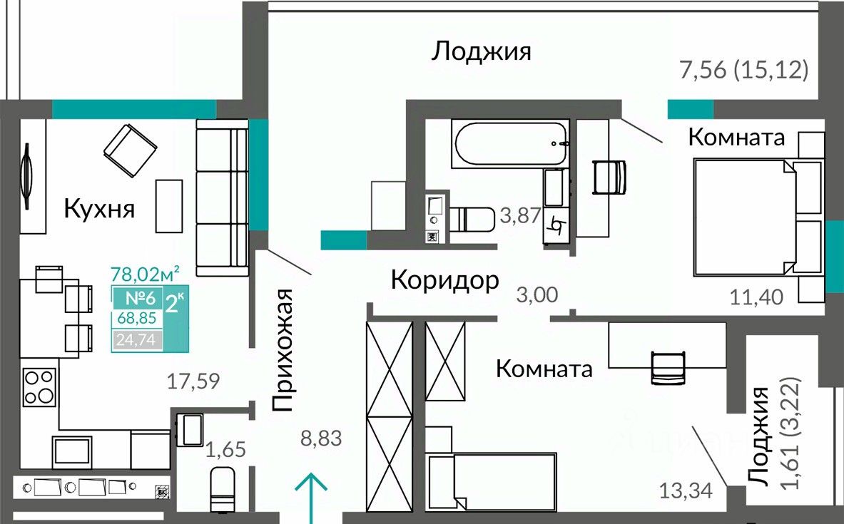 68 м² · Этаж 2 из 7