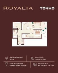 Жилой комплекс ''РОЯЛТА'' включает 5 монолитно-кирпичных девятиэтажных зданий. Проект предлагает квартиры различных планировок: от однокомнатных до трехкомнатных с расширенными балконами и террасами до 13,4 м2. Территория будет благоустроена детскими игровыми и спортивными площадками, гостевой автостоянкой и озеленением, включая газоны, деревья и кустарники. Также появятся современные уличные тренажёры, СПА-комплекс и панорамный инфинити-бассейн. В шаговой доступности находятся центральная набережная Ялты, детские сады, школы, супермаркеты, торговые центры, Ялтинский медицинский колледж, автовокзал и Мордвиновский парк.