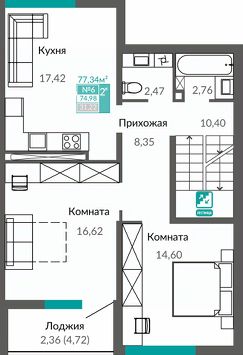 Продаётся 2-комнатная квартира в строящемся доме (8 этап (Секция К4, М1.2)), срок сдачи: I-кв. 2027, общей площадью 74.98 кв.м., на 2 этаже. Новый жилой квартал ''Горизонты'' от застройщика ''Монолит'' расположен по адресу Республика Крым, Симферополь, микрорайон Крымская роза.