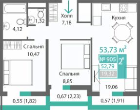 Продаётся 2-комнатная квартира в строящемся доме (Этап 1), срок сдачи: I-кв. 2028, общей площадью 52.79 кв.м., на 9 этаже. Новый жилой комплекс от ГК ''Монолит'' по адресу: Республика Крым, Симферополь, улица Святителя Гурия