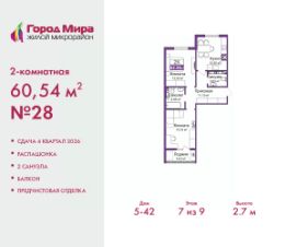 Просторная 2-комн. квартира с предчистовой отделкой в ЖМ ''Город Мира'' на 7 этаже. Общая площадь: 60.54 кв.м., жилая: 27.72 кв.м., площадь просторной кухни-столовой: 12.01 кв.м. Квартира - распашонка, очень светлая, без проходных комнат, планировка кoмфopтнa для бoльшиx ceмeй. В квартире один балкон, один совмещенный и один раздельный санузел. Высота потолков 2.7 м. Квартиры в ЖК ''Город Мира'' ваш комфорт начинается здесь! ''Город Мира'' это масштабный жилой комплекс, созданный для тех, кто ценит комфорт, безопасность и гармонию с природой. Здесь продумана каждая деталь: от удобной инфраструктуры до эргономичных планировок квартир. В 2024 году микрорайон ''Город Мира'' победил в номинации ''Лучший экологический проект года в сфере строительства'' по версии премии Crimea Urban Awards. Почему выбирают наш комплекс: - Зеленый оазис живите среди природы в черте города.- Всё под рукой 2 детских сада, магазины, фитнес, медицина. - Безопасность: закрытая территория с видеонаблюдением. Наши квартиры: - Просторные планировки с кладовыми. - Автономное отопление: платите только за реальное потребление. - Готовая предчистовая отделка: стяжка пола, штукатурка стен (кроме 3, 4 домов, где нет штукатурки стен). - Консьерж-сервис и подземный паркинг. Инфраструктура комплекса: - Детские и спортивные площадки. - Зоны отдыха с беседками. - Фитнес-клубы и салоны красоты. - Будущая школа на территории, уже функционируют два детских сада. Выгодные условия покупки: - Ипотека от 5,5%, военная ипотека от 5,5%. - Рассрочка. - Материнский капитал на первоначальный взнос. Квартира находится в корпусе 5_42. Дом монолитный, одноподъездный, высотой 9 этажей. В подъезде 1 грузовой лифт. Окончание строительства - 4 квартал 2026 года. Оформление сделки по договору долевого участия. #2MzUUW