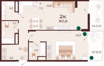 Продаётся 2-комнатная квартира в строящемся доме (Корпус 1), срок сдачи: II-кв. 2027, общей площадью 90.6 кв.м., на 6 этаже. Жилой комплекс бизнес-класса ''РОЯЛТА'' от застройщика ''ГК ТОЧНО'' в городе Ялта Республики Крым на улице Спендиарова.