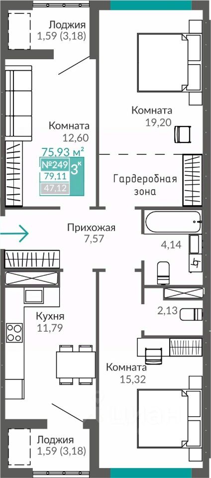 Продаётся 3-комнатная квартира в строящемся доме (С7), срок сдачи: III-кв. 2027, общей площадью 75.55 кв.м., на 9 этаже. Жилой квартал ''Абрикос'' - начало яркой истории жизни в прогрессивном районе Симферополя - Семья городских кварталов ''Крымская Роза''. Вы станете частью комьюнити, где царят принципы удобства, легкости, комфорта, заботы о здоровом образе жизни, добрососедства и открытости. Ваш дом - это место для отдыха, развития, общения и дружбы. Мы спроектировали дворовое пространство квартала так, чтобы каждому члену семьи было весело играть на площадках, спокойно расслабляться под перголой, ставить рекорды в зоне воркаута, узнавать новости от соседей в кофейне возле дома, или устраивать фотосессии с детьми в фактурной тени деревьев. Жилой квартал оживает вместе с вами и готов вместе с вами меняться!