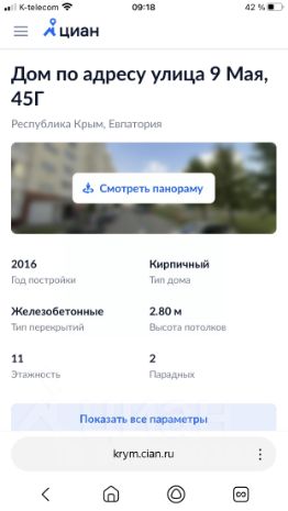 Продается 3 комнатная квартира в тихом спальном районе города Евпатория.Общая площадь квартиры 67.4 м2,кухня 9.2 м2,три изолированные комнаты( 18,5 м2,12.5 м2 и 8.2м2) Санузел раздельный,есть большая кладовая.Установлено автономное отопление.Большие балкон и лоджия,которые утеплены ,при желании можно обустроить под дополнительную комнату. В квартире выполнен косметический ремонт.Мебель остается по договоренности.Двор закрытого типа.Есть детская и спортивная площадка.Парковочные места во дворе.В шаговой доступности колхозный рынок,торговый центр,магазины,аптеки,школы,детский сад,авто и ж/д вокзалы.До Набережной Терешковой 20 минут прогулочным шагом. При звонке сообщите нам, пожалуйста, номер: V6160
