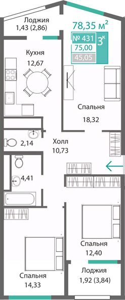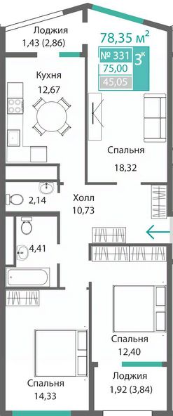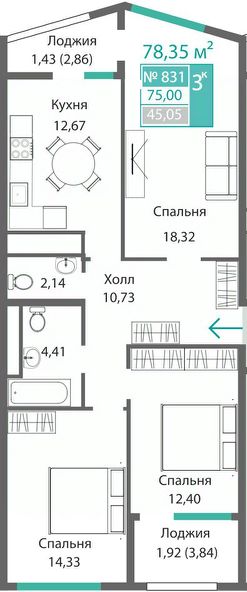 Продаётся 3-комнатная квартира в строящемся доме (Этап 4 (Секции А2, Ж2, Г4, В2, Г3)), срок сдачи: II-кв. 2028, общей площадью 78.35 кв.м., на 3 этаже. Новый жилой комплекс ''Подсолнух'' от застройщика ''Монолит'' расположен по адресу: Республика Крым, г. Симферополь, ул. Святителя Гурия