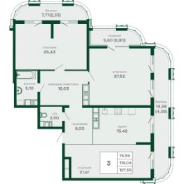 Продаётся 3-комнатная квартира в строящемся доме (Этап 16 (Секция В9)), срок сдачи: II-кв. 2027, общей площадью 76.74 кв.м., на 7 этаже. В жизни каждого наступает момент, когда мы понимаем, что выросли. Приходит время твердо идти вперед, расширять границы и открывать новые горизонты. Городской округ ''Горизонты'' - прекрасен для первого собственного жилья, идеален для выхода на новый уровень сбалансированной и легкой жизни.