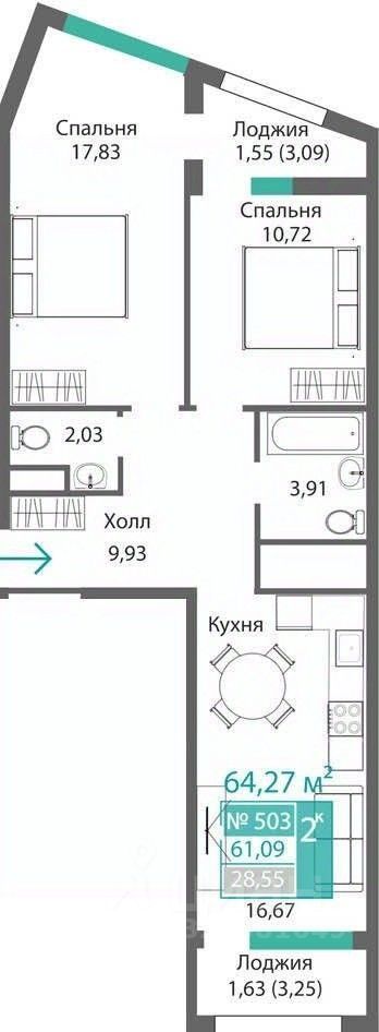64 м² · Этаж 3 из 9