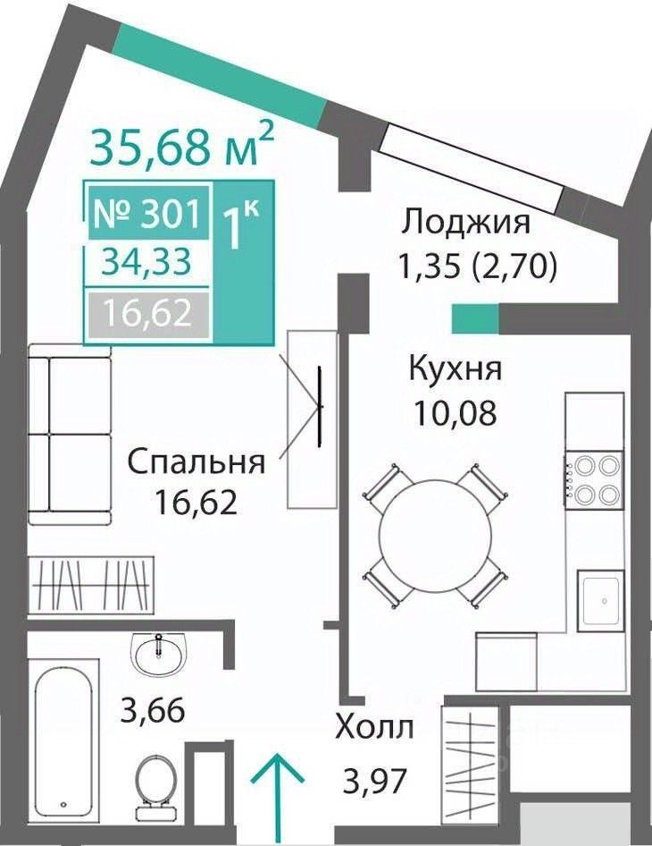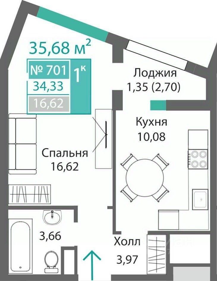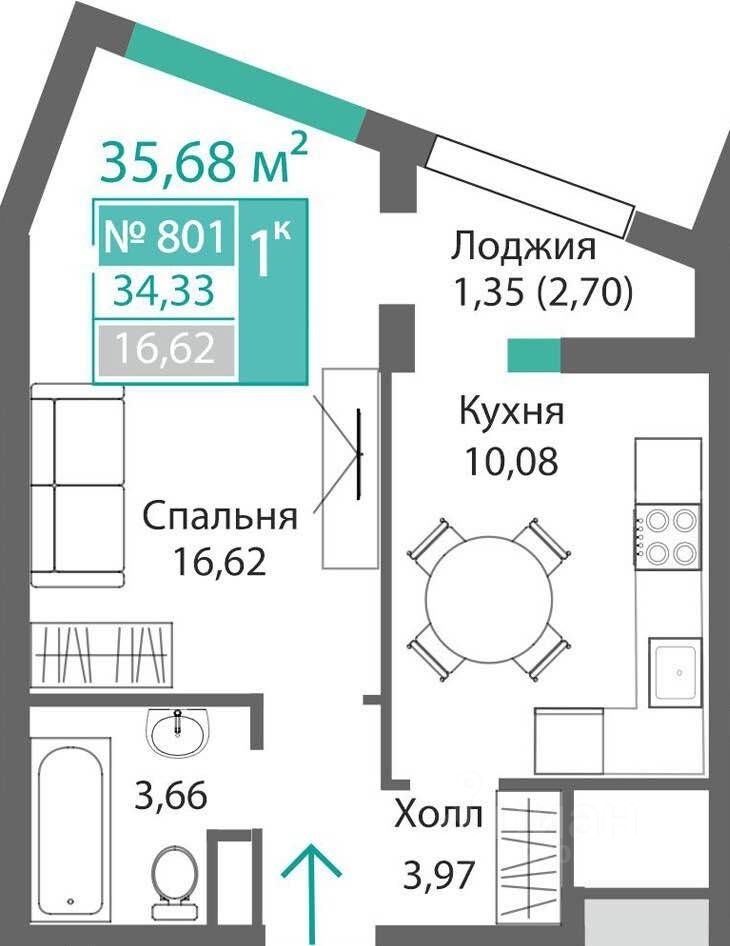 34 м² · Этаж 6 из 9